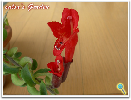 そんな擬音が似合う大口開けたお花、これがエスキナンツスの花だったんですねー。うーんびっくり。