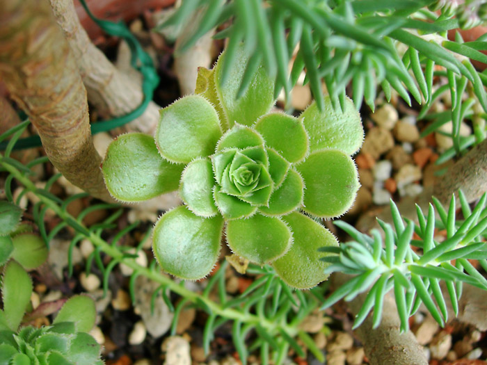 まだ若いが、緑でスモーキーな色合いが特徴のアエオニウム。なかなか硬派でイイやつだ。
