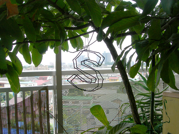 前にぴかさんにお会いしたときいただいたワイヤー作品だー。